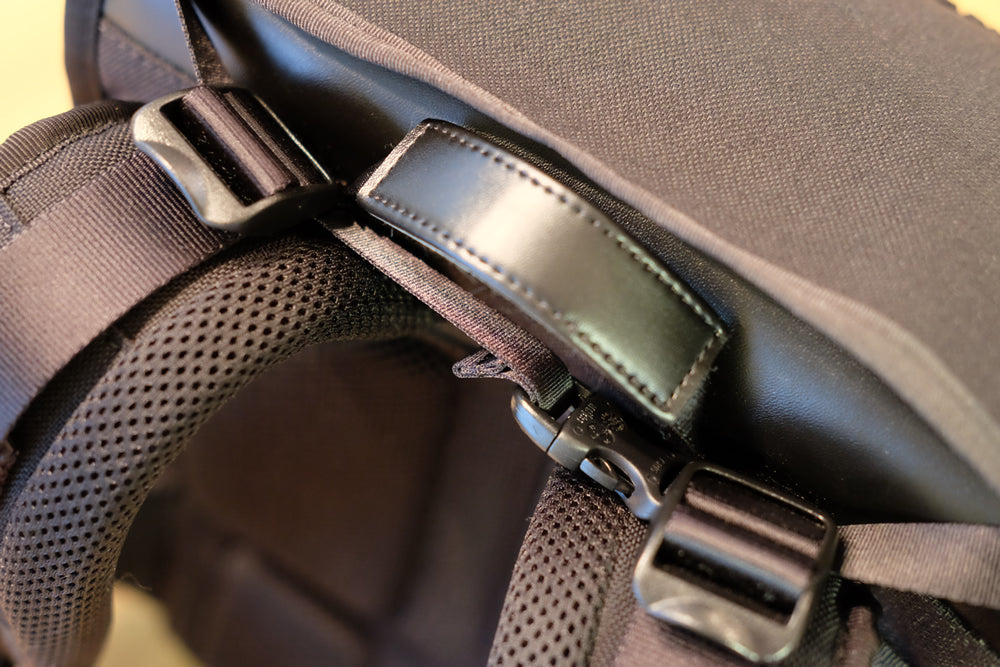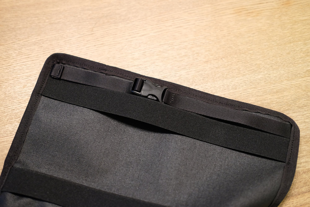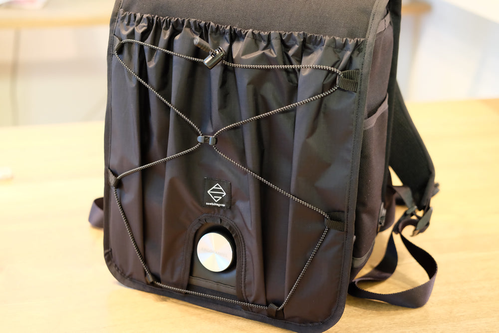 登山のバックパックからヒントを得て開発したランドセルカバーですから、アウトドアの雰囲気に寄せたデザインに仕上げています。ファスナーなしのオープンポケット、リフレクティブストレッチコードとセンタークリップ。他のパーツも細部までこだわっています。